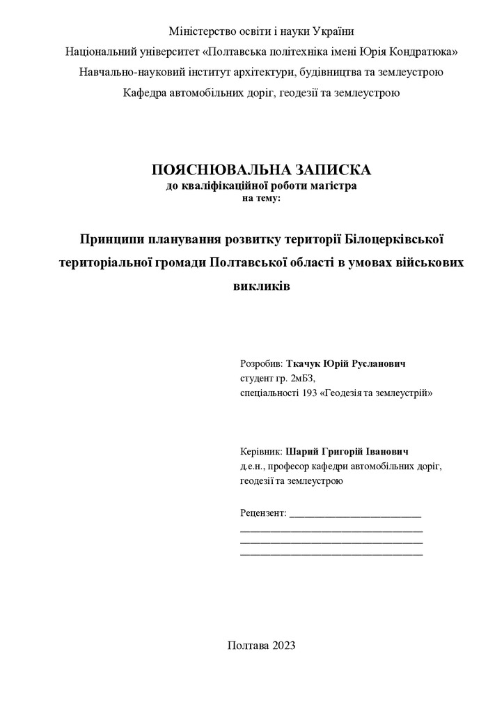 Принципи планування розвитку території Білоцерківської територіальної громади Полтавської області в умовах військових викликів
