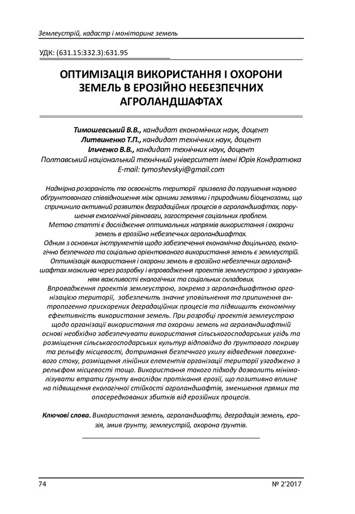 Стаття 2024/04/27Оптимізація використання і охорони земель в ерозійно небезпечних агроландшафта