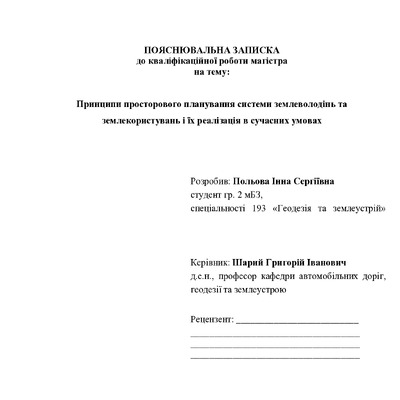 Магістерська робота присвячена вивченню питання реалізації принципів просторового планування сист...