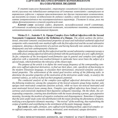 2018/06/12Структурно-семантичні та функціонально-стильові властивості складнонульсуфіксальних ад’єктивів з другим соматичним компонентом на означення внутрішньої характеристики людини