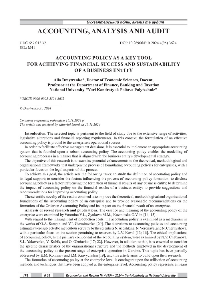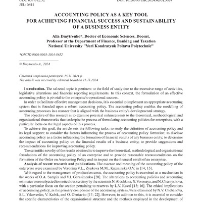 Accounting policy as a key tool for achieving financial success and sustainability of a business entity