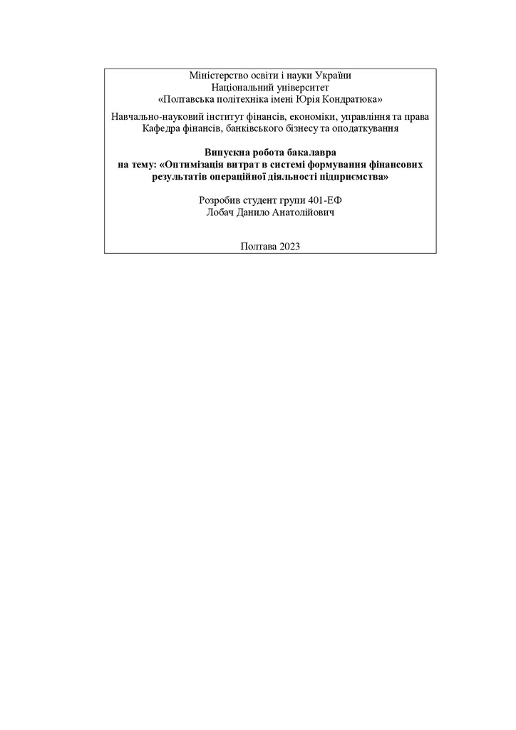 Оптимізація витрат в системі формування фінансових результатів операційної діяльності підприємства