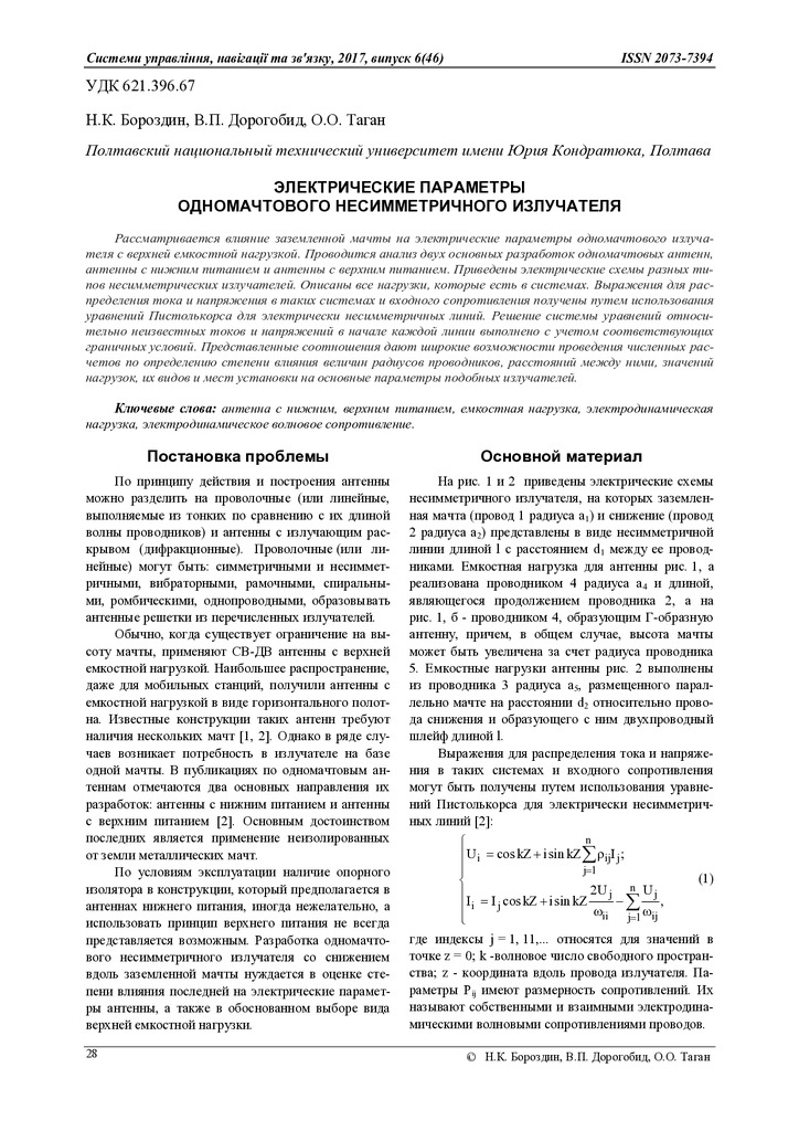 Рассматривается влияние заземленной мачты на электрические параметры одномачтового излучателя с верхней емкостной нагрузкой. Проводится анализ двух основных разработок одномачтовых антенн, антенны ...