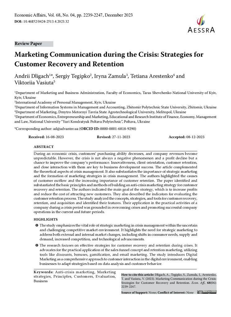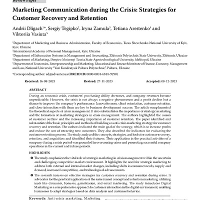 Marketing сommunication during the crisis: strategies for customer recovery and retention