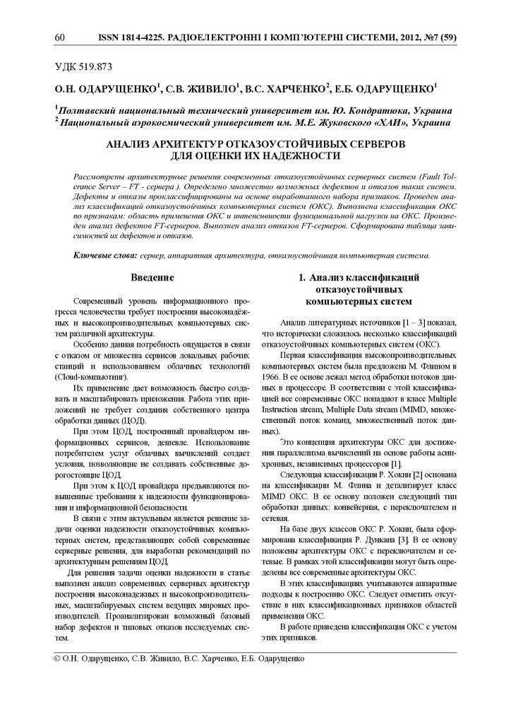 Анализ архитектур отказоустойчивых серверов для оценки их надежности