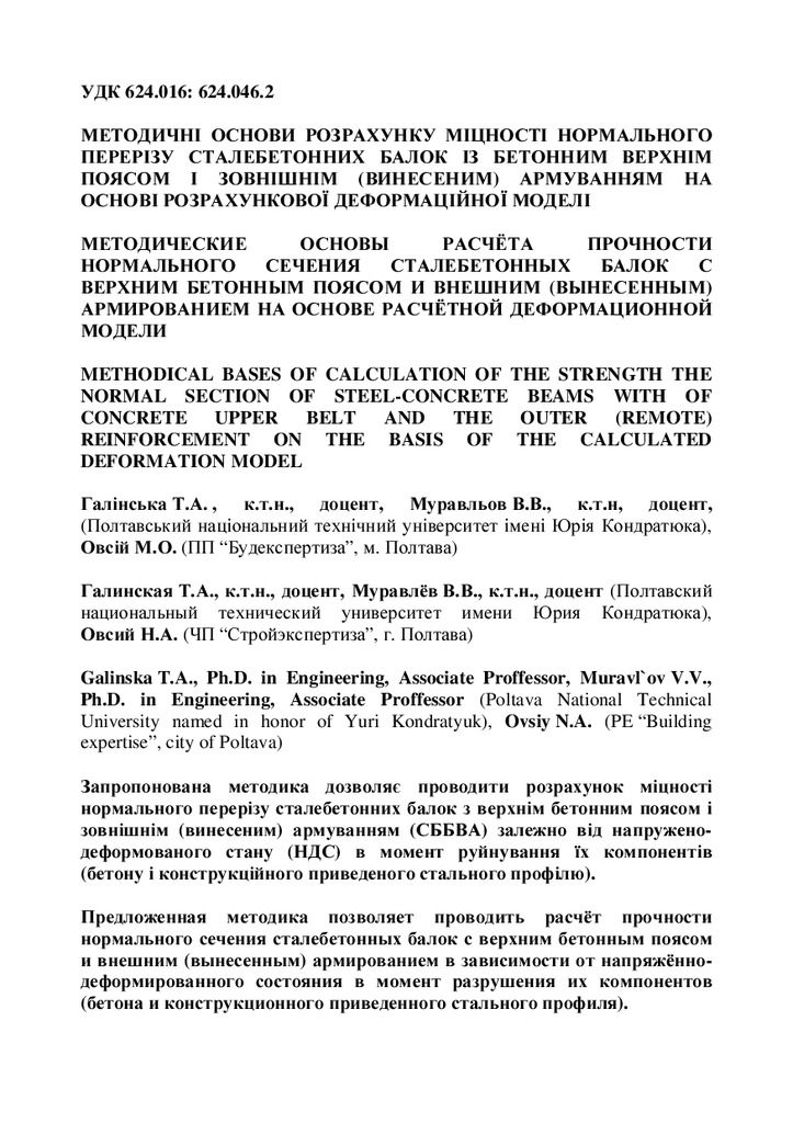 Запропонована методика дозволяє проводити розрахунок міцності нормального перерізу сталебетонних ...