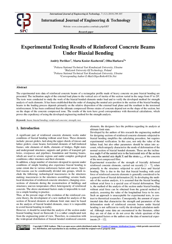 2018/09/03Experimental testing results of reinforced concrete beams under biaxial bending