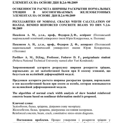 2020/06/05Особливості розрахунку ширини розкриття нормальних тріщин у косозігнутих залізобетонних елементах на основі ДБН В.2.6-98:2009