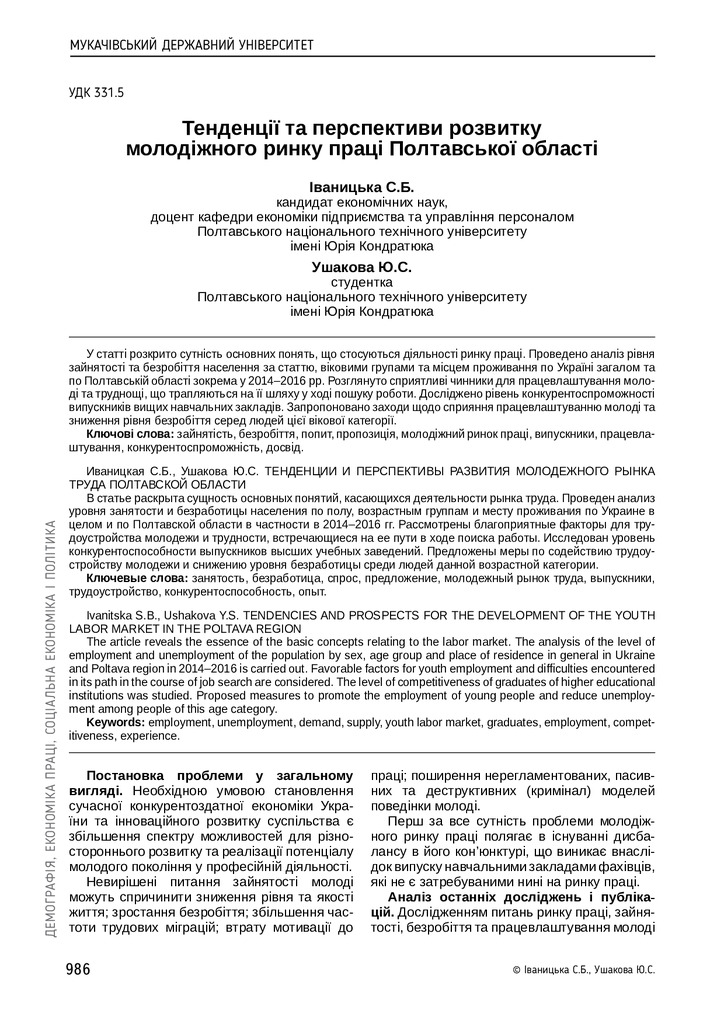 Тенденції та перспективи розвитку молодіжного ринку праці Полтавської області