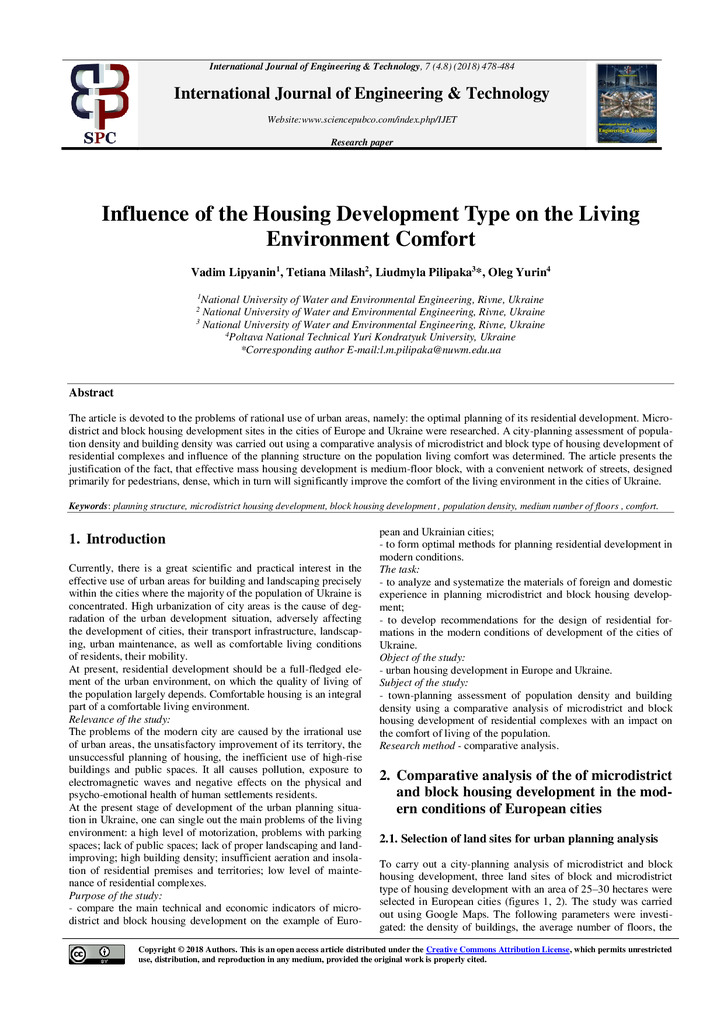 Influence of the housing development type on the living environment comfort