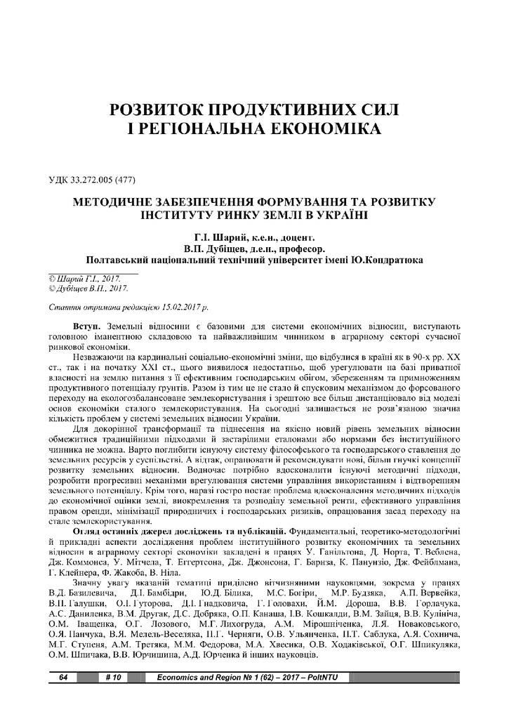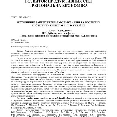 Методичне забезпечення формування та розвитку інституту ринку землі в Україні