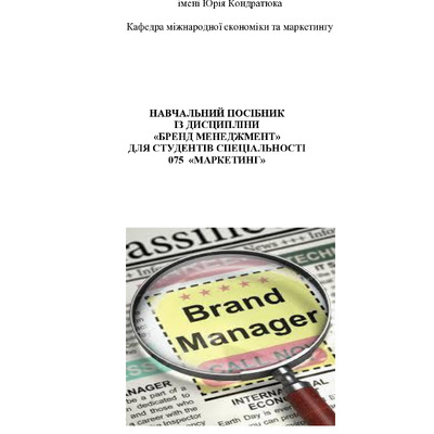Навчальний посібник із дисципліни «Бренд менеджмент» для студентів спеціальності 075 «Маркетинг» присвячений вивченню технологій створення брендів і методик аналізу позиції бренду, креативу і практ...