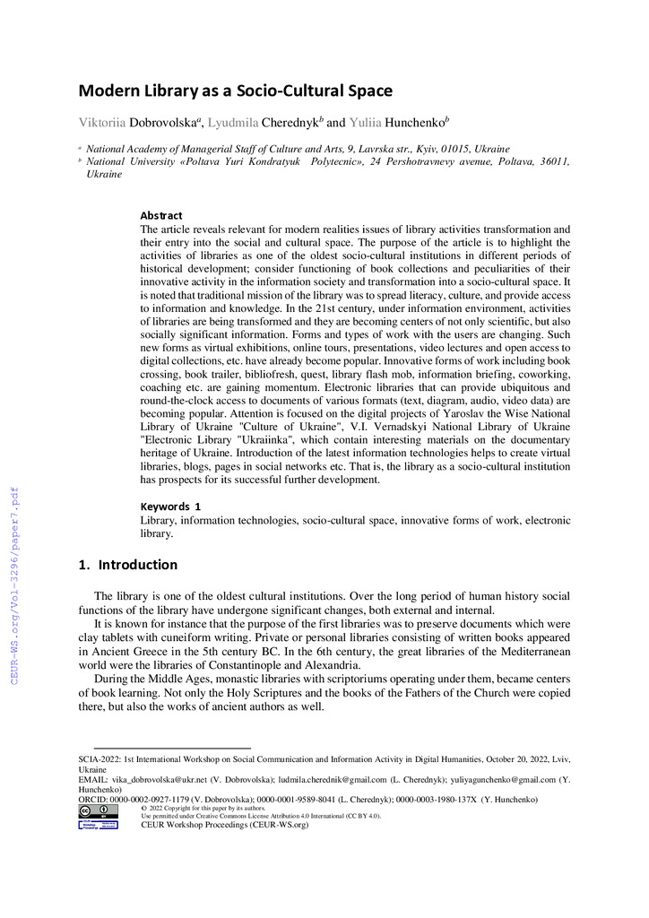 2022/12/30Modern Library as a Socio-Cultural Space