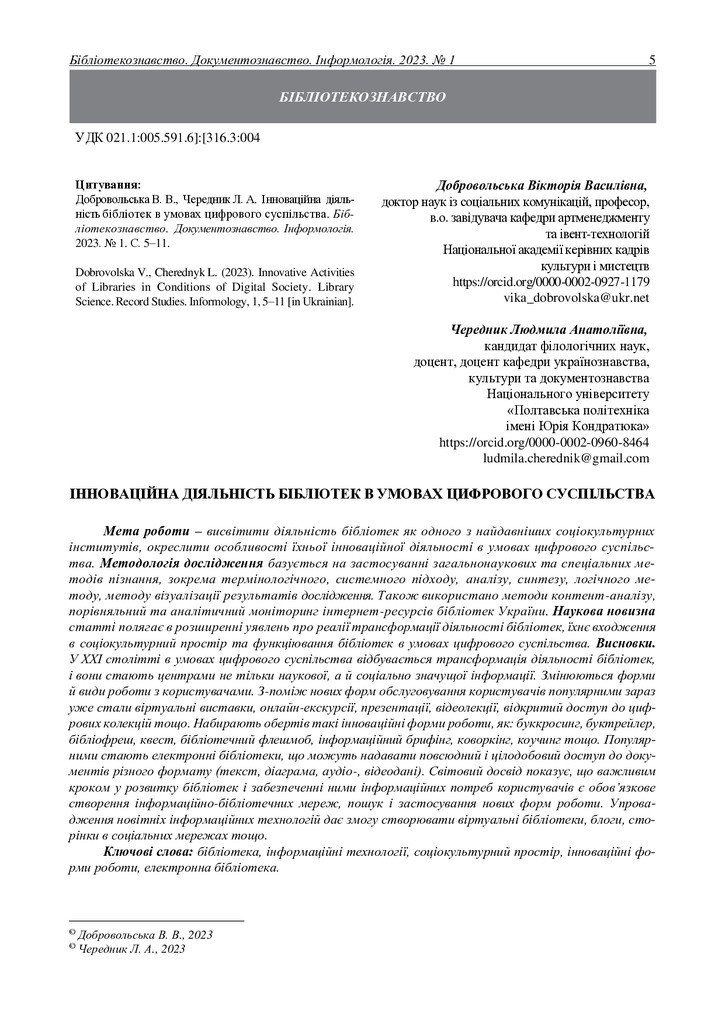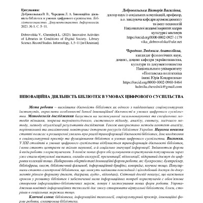2023/04/26Інноваційна діяльність бібліотек в умовах цифрового суспільства