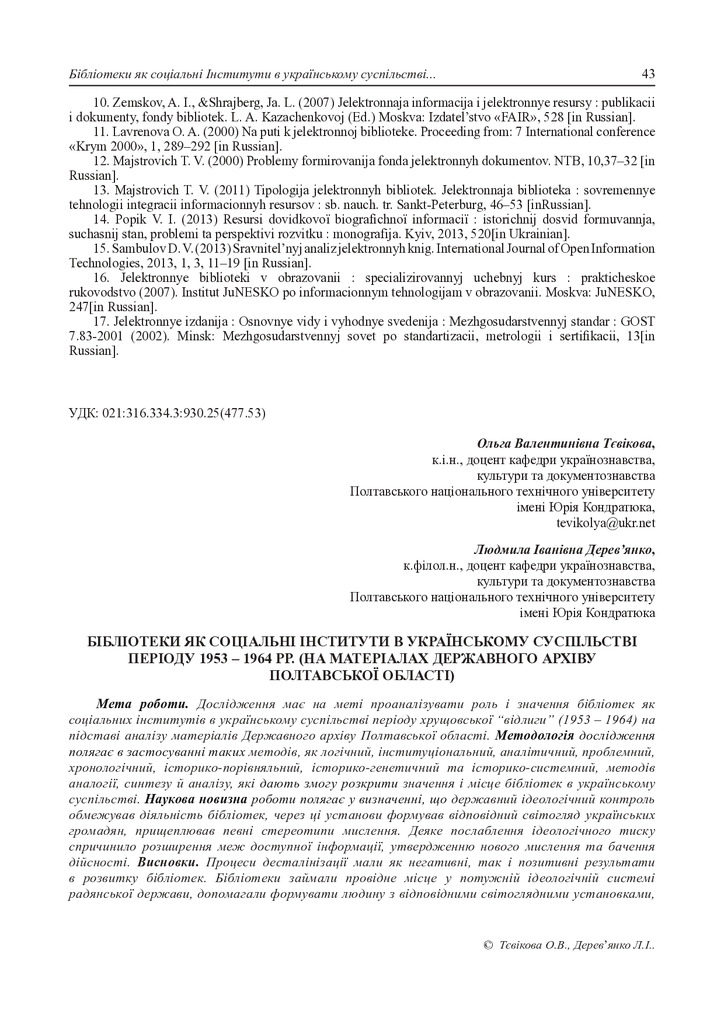 2021/06/07Бібліотеки як соціальні інститути в українському суспільстві періоду 1953 – 1964 рр. (на матеріалах Державного архіву Полтавської області)