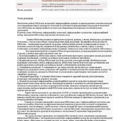 Віртуальна бібліотека як новітній інформаційний центр