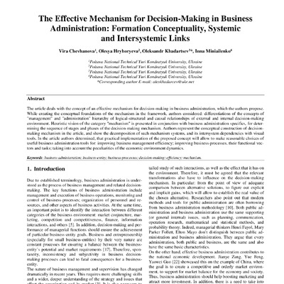 The Effective Mechanism for Decision-Making in Business Administration: Formation Conceptuality, Systemic and Intersystemic Links