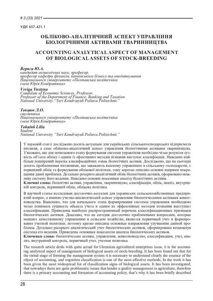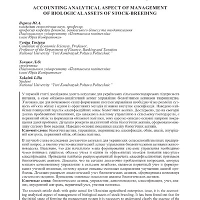 Обліково-аналітичний аспект управління біологічними активами тваринництва