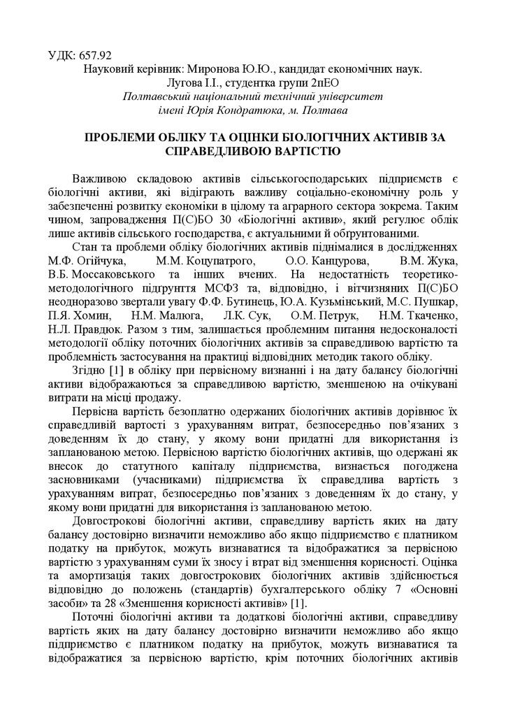 Проблеми обліку та оцінки біологічних активів за справедливою вартістю