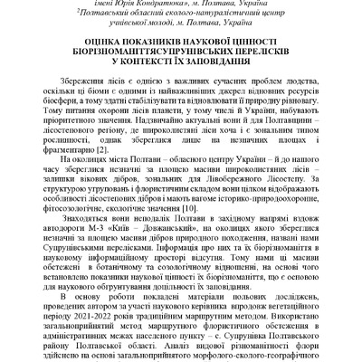 Стаття 2023/04/14Оцінка показників наукової цінності біорізноманіття Супрунівських перелісків у контексті їх заповідання