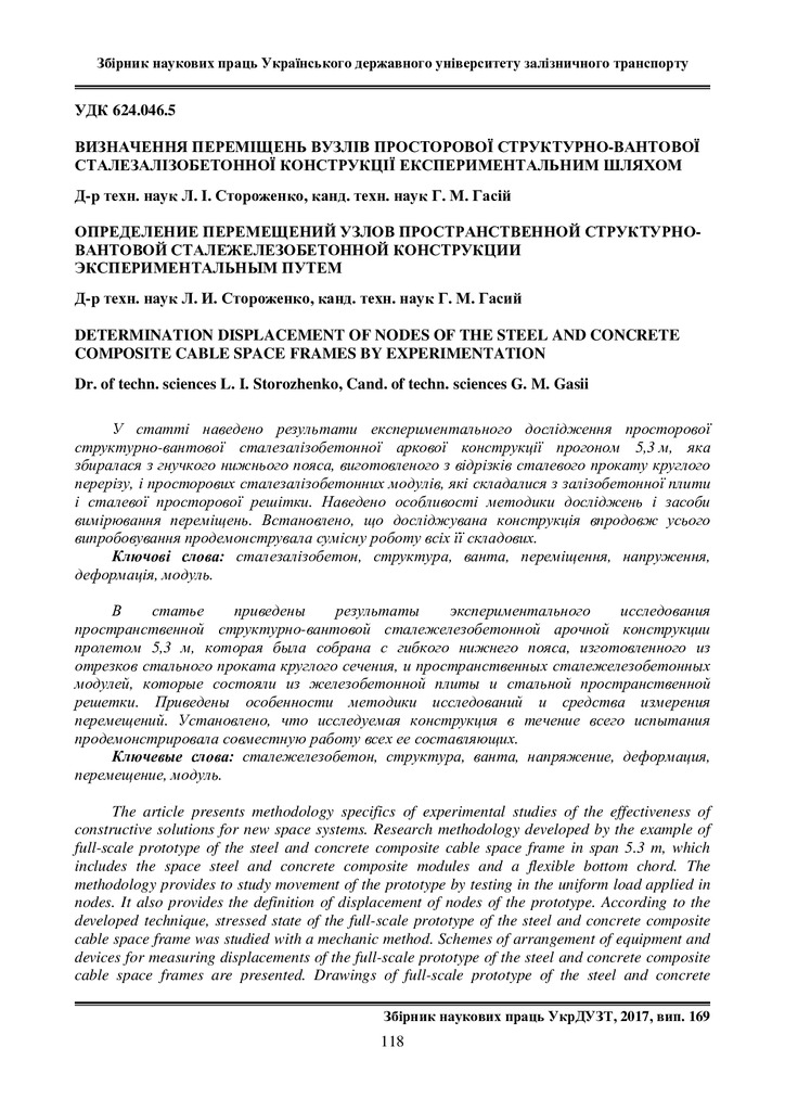 Стаття 2017/11/22Визначення переміщень вузлів просторової структурно-вантової сталезалізобетонної аркової конструкції