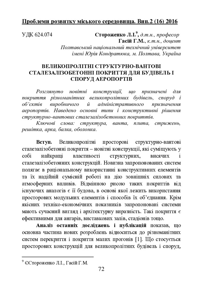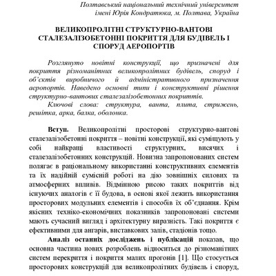 Великопролітні структурно-вантові сталезалізобетонні покриття для будівель і споруд аеропортів