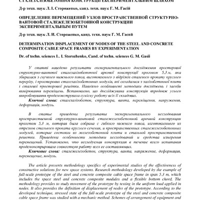 Стаття 2018/02/18Determination displacement of nodes of the steel and concrete composite cable space frames by experimentation