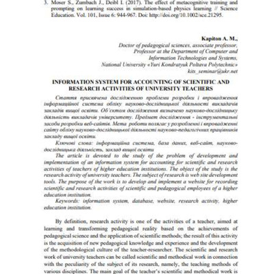 Стаття 2023/06/07Information system for accounting of scientific and research activities of university teachers
