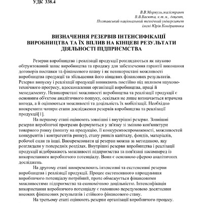 2019/06/11Визначення резервів інтенсифікації виробництва та їх вплив на кінцеві результати діяльності підприємства