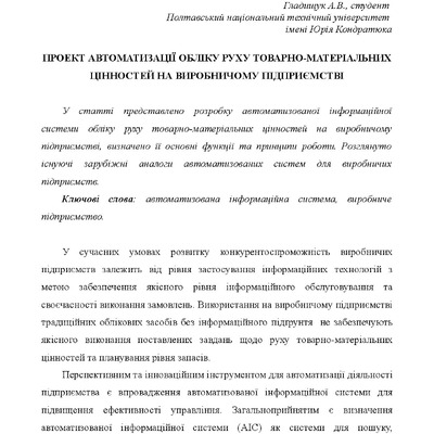 2021/05/28Проект автоматизації обліку руху товарно-матеріальних цінностей на виробничому підприємстві