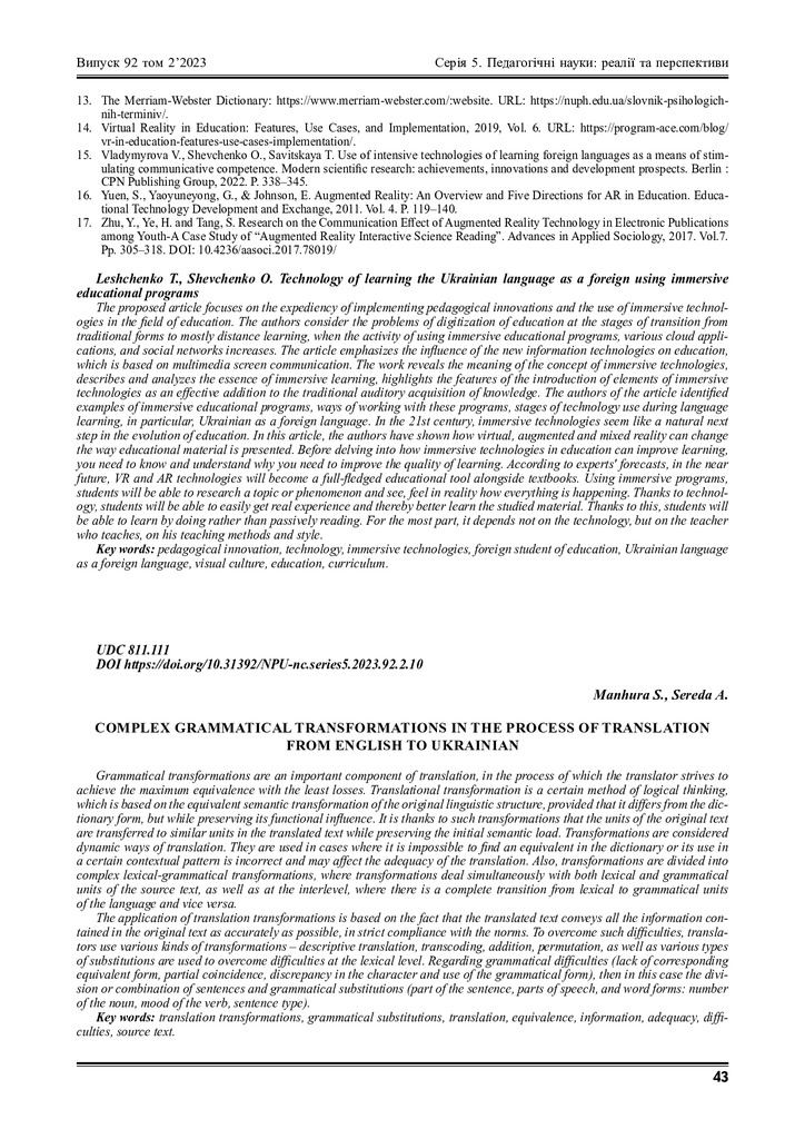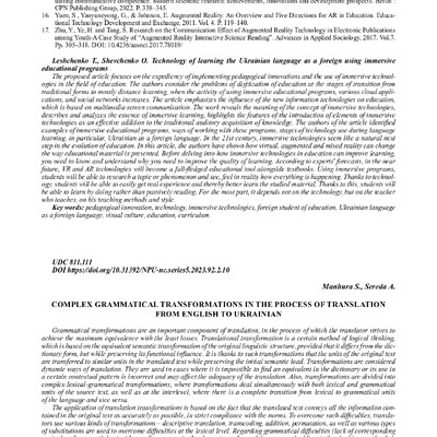 Complex grammatical transformations in the process of translation from English to Ukrainian