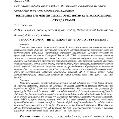 В статті розглянуто міжнародні концепції складу, визначення та визнання елементів фінансових звіт...