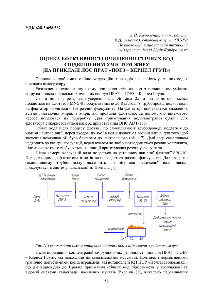 Оцінка ефективності очищення стічних вод з підвищеним умістом жиру (на прикладі ЛОС ПРАТ «ПОЕЗ – Кернел Груп»)