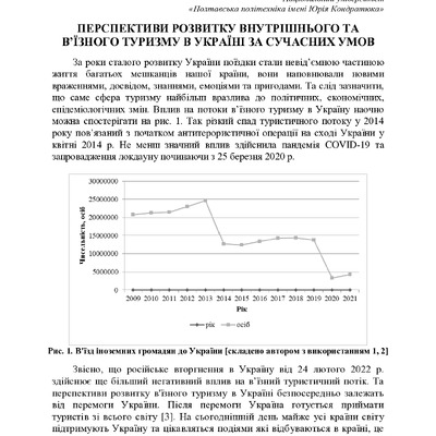 Стаття 2023/07/10Перспективи розвитку внутрішнього та в'їзного туризму за сучасних умов