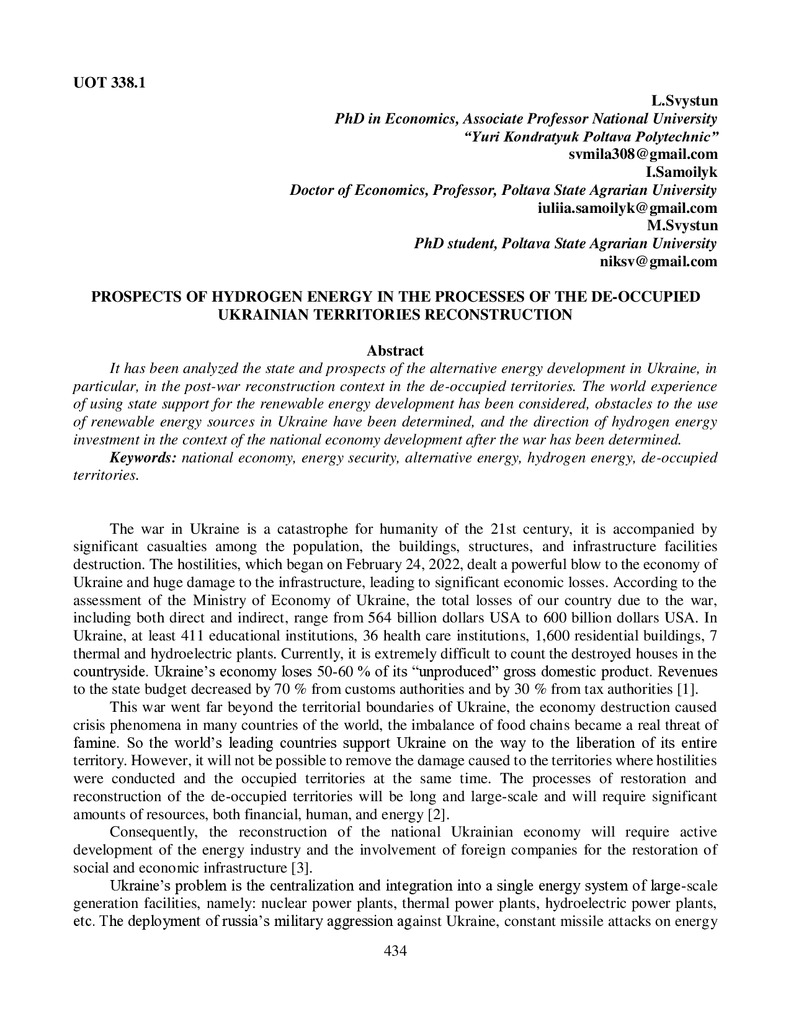 2024/09/05Prospects of hydrogen energy in the processes of the de-occupied Ukrainian territories reconstruction