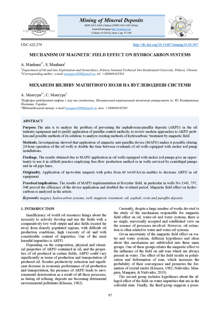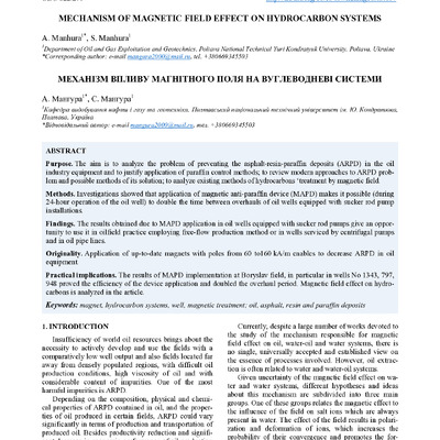 Стаття 2020/07/13Mechanism of magnetic field effect on hydrocarbon systems