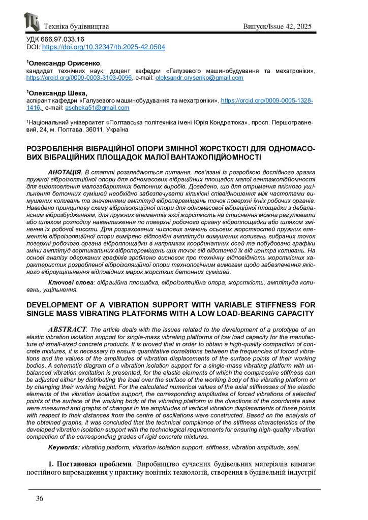 2020/07/06Розроблення пружних опор вібраційних площадок для формування залізобетонних виробів