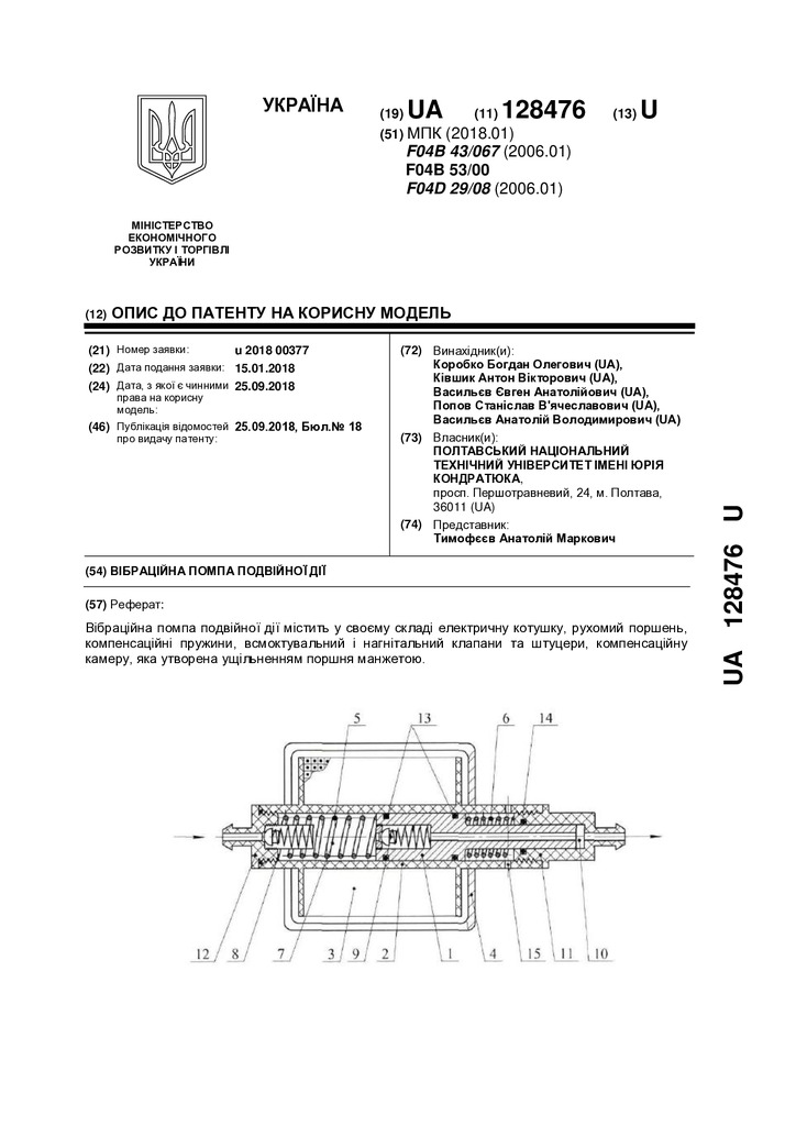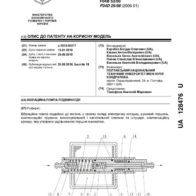 Вібраційна помпа подвійної дії : пат. на корисну модель