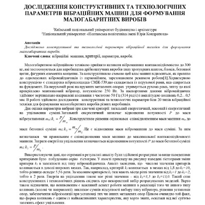 Дослідження конструктивних та технологічних параметрів вібраційних машин для формування малогабаритних виробів