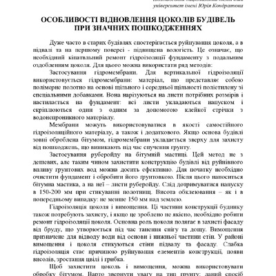 Особливості відновлення цоколів будівель при значних пошкодженнях