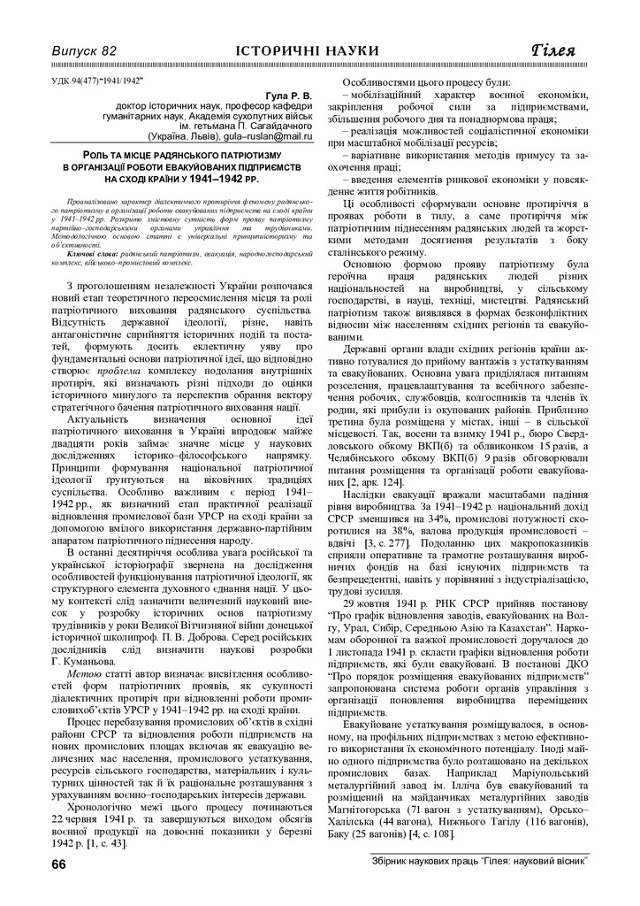 Роль та місце радянського патріотизму в організації роботи евакуйованих підприємств на сході країни у 1941–1942 рр.