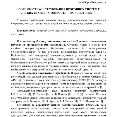Особливості конструювання прогонних систем із легких сталевих тонкостінних конструкцій
