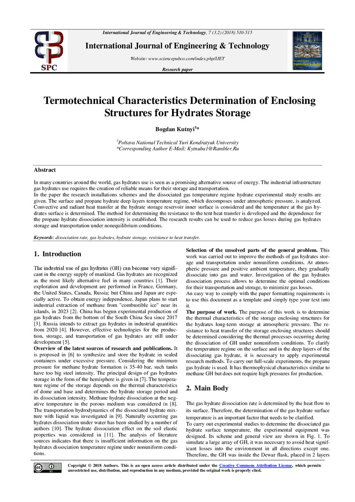 Проблема утворення та дисоціації газових гідратів має важливе значення під час видобутку, підгото...