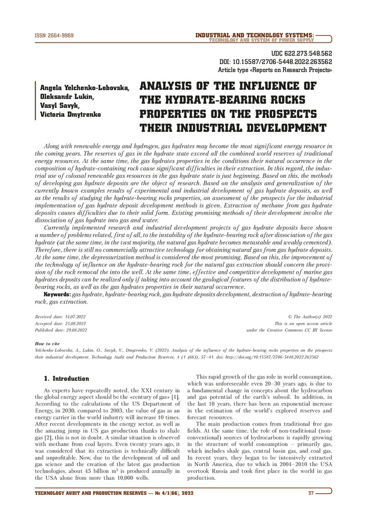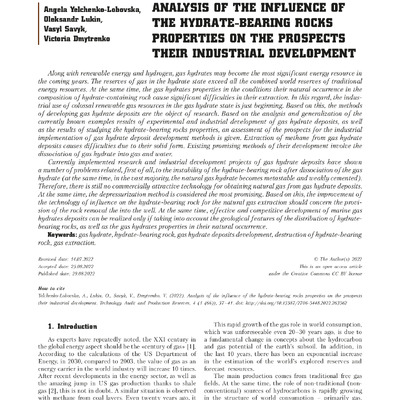 Analysis of the influence of the hydrate-bearing rocks properties on the prospects their industrial development