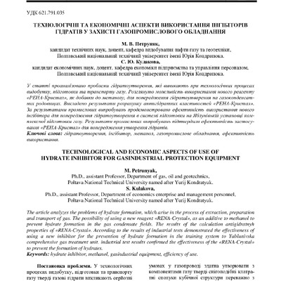 Технологічні та економічні аспекти використання інгібіторів гідратів у захисті газопромислового обладнання
