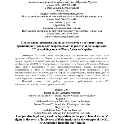 Стаття 2024/04/15Порівняльно-правовий аналіз законодавства про захист прав працівників у разі неплатоспроможності їх роботодавця на прикладі ЄС, Азербайджанської республіки та України