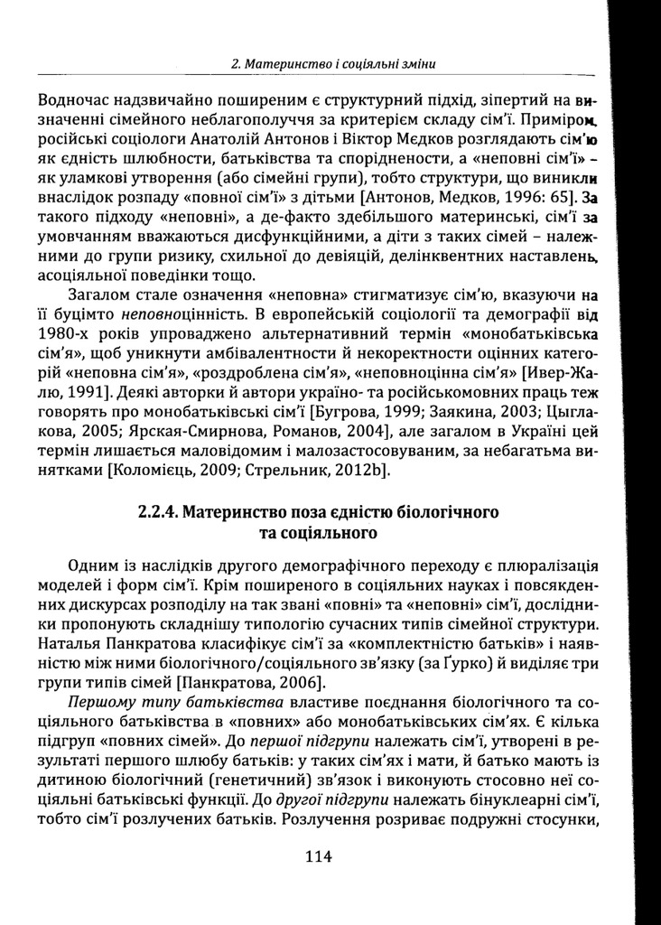 Запропоновано авторську концепцію материнства як соціальної практики. Авторка показує варіативність практик материнства в соціоісторичному вимірі; визначає зміни соціально-демографічних характерист...