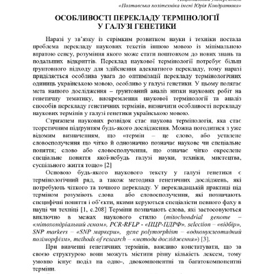 Стаття 2022/06/04Особливості перекладу наукових термінів у галузі генетики українською мовою