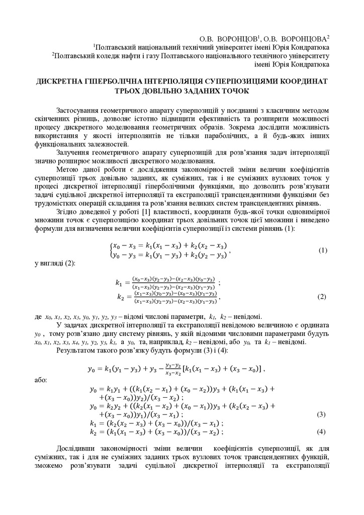 2023/12/07Дискретна гіперболічна інтерполяція суперпозиціями координат трьох довільно заданих точок