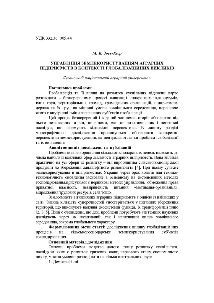 Управління землекористуванням аграрних підприємств в контексті глобалізаційних викликів